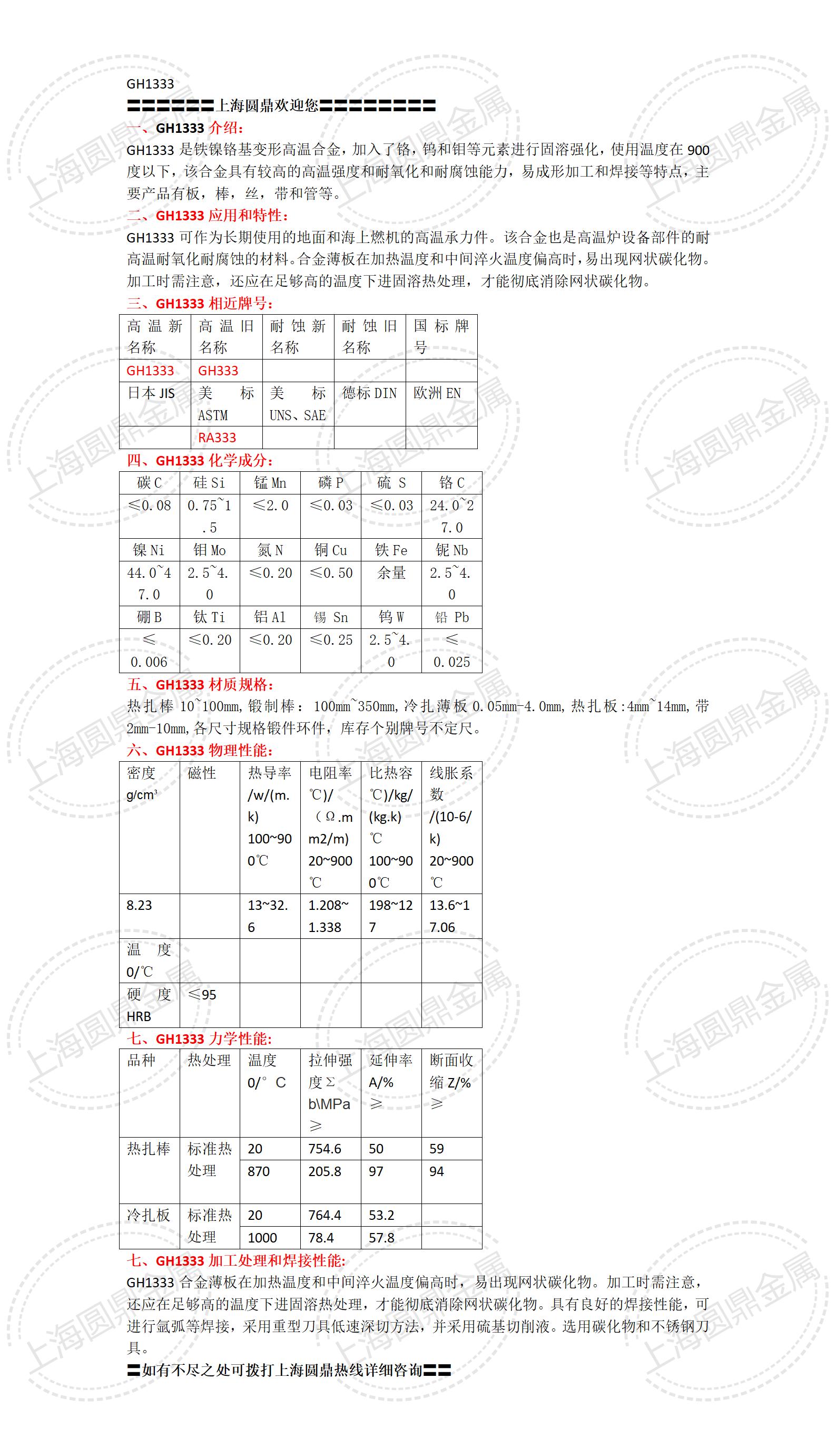 GH1333(RA333)镍基高温合金