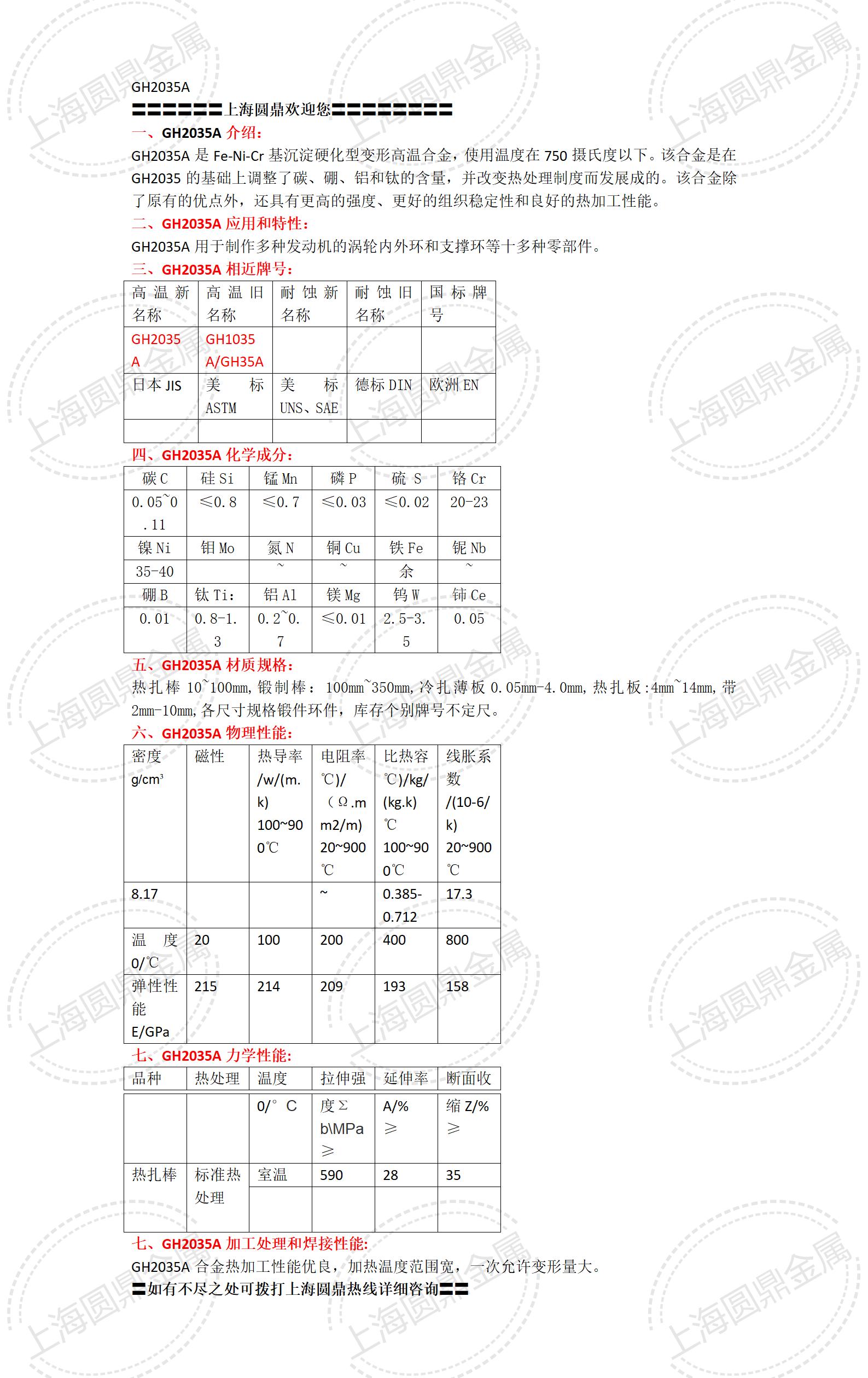 GH2035A(GH35A)镍基高温合金