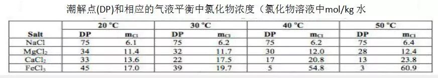 服役环境必须低于潮解点,才能使盐处于干燥状态,不发生水溶液腐蚀。